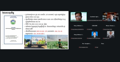 កិច្ចប្រជុំនេះបានដំណើរការតាមរយៈប្រព័ន្ធ Zoom ដឹកនាំដោយ ឯកឧត្ដម ទេព ភិយ្យោរិន្ទ្រ អនុរដ្ឋលេខាធិការ នៃក្រសួងសេដ្ឋកិច្ច និងហិរញ្ញវត្ថុ និងជាប្រធានគណៈកម្មការប្រឹក្សាយោបល់ និងអនុម័ត គម្រោងពិពិធកម្មកសិកម្មកម្ពុជា ដោយមានការចូលរួមពីតំណាងស្ថាប័នពាក់ព័ន្ធ រួមមាន ក្រសួងកសិកម្ម រុក្ខាប្រមាញ់ និងនេសាទ, ក្រសួងអភិវឌ្ឍន៍ជនបទ, ក្រសួងសេដ្ឋកិច្ច និងហិរញ្ញវត្ថុ ក្រសួងធនធានទឹក និងឧតុនិយម, និងតំណាងវិស័យឯកជន សម្ព័ន្ធសហគមន៍កសិកម្មកម្ពុជា ដើម្បីផ្ដល់ការគាំទ្រហិរញ្ញប្បទានឥតសំណងបំពេញបន្ថែមទុនវិនិយោគក្រោមគម្រោងពិពិធកម្មកសិកម្មកម្ពុជា។