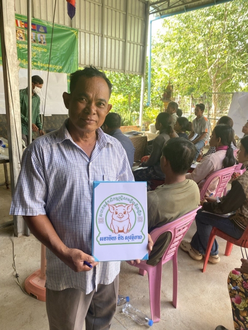 គ្រូបង្គោលថ្នាក់ជាតិមកពីអគ្គនាយកដ្ឋានសុខភាពសត្វ និងផលិតកម្មសត្វ (DGAHP) បានដឹកនាំបើកវគ្គបណ្តុះបណ្តាលស្តីពីជំងឺជ្រូក ច្បាប់ស្តីពីសុខភាពសត្វ ការអនុវត្តកសិកម្មល្អ និងជីវសុវត្ថិភាព។
