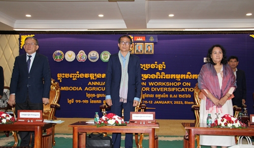 សិក្ខាសាលាប្រចាំឆ្នាំឆ្លុះបញ្ចាំងវឌ្ឍនភាពការអនុវត្តគម្រោងពិពិធកម្មកសិកម្មកម្ពុជា (CASDP) ត្រូវបានរៀបចំឡើងនៅសណ្ឋាគារសុខាល័យអង្គរ ខេត្តសៀមរាប នៅថ្ងៃទី១១-១២ ខែមករា ឆ្នាំ២០២៣ ដើម្បីឆ្លុះបញ្ចាំងពីបទពិសោធន៍ សមិទ្ធផលនានា និងបញ្ហាប្រឈម ដែលបានអនុវត្តកាលពីឆ្នាំ២០២២ និងកំណត់ចងក្រងបទពិសោធន៍សំខាន់ៗសម្រាប់កែលម្អការអនុវត្តគម្រោងឱ្យបានល្អប្រសើរនៅឆ្នាំ២០២៣។