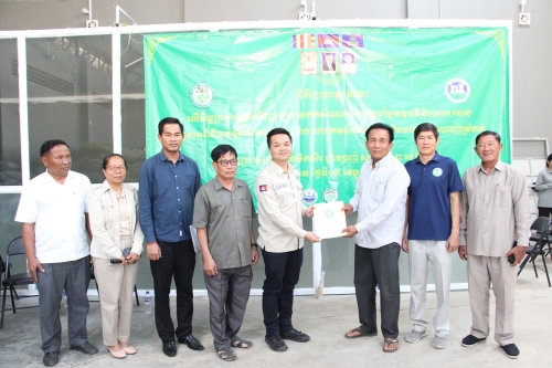 ឯកឧត្តម ឃឹម ហ្វីណង់ អនុរដ្ឋលេខាធិការក្រសួងកសិកម្ម រុក្ខាប្រមាញ់ និងនេសាទ និងជានាយកគម្រោង CASDP បានចុះហត្ថលេខាជាមួយ លោក អ៊ុន អឿន ប្រធានក្រុមប្រឹក្សាភិបាលសហគមន៍កសិកម្មទំនើបបន្លែផ្ទះសំណាញ់ត្រាំកក់ នៅទីស្នាក់ការសហគមន៍នៅភូមិត្រពាំងចក ឃុំត្រាំកក់ ស្រុកត្រាំកក់ ខេត្តតាកែវ។ អញ្ជើញចូលរួមធ្វើជាសាក្សីក្នុងកិច្ចព្រមព្រៀងរួមមាន ប្រធានគ្រប់គ្រងគម្រោង CASDP តំណាងអង្គភាពអនុវត្តគម្រោង CASDP តំណាងមន្ទីរកសិកម្មខេត្ត អាជ្ញាធរមូលដ្ឋាន និងសមាជិកសហគមន៍កសិកម្មប្រហែល៥០នាក់។